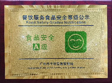 2019年12月經(jīng)廣州市 食藥管理監(jiān)督局及黃埔區(qū)食藥監(jiān)督管理局現(xiàn)場(chǎng)審核評(píng)估后榮升黃埔區(qū)量化A級(jí)餐飲單位 。
